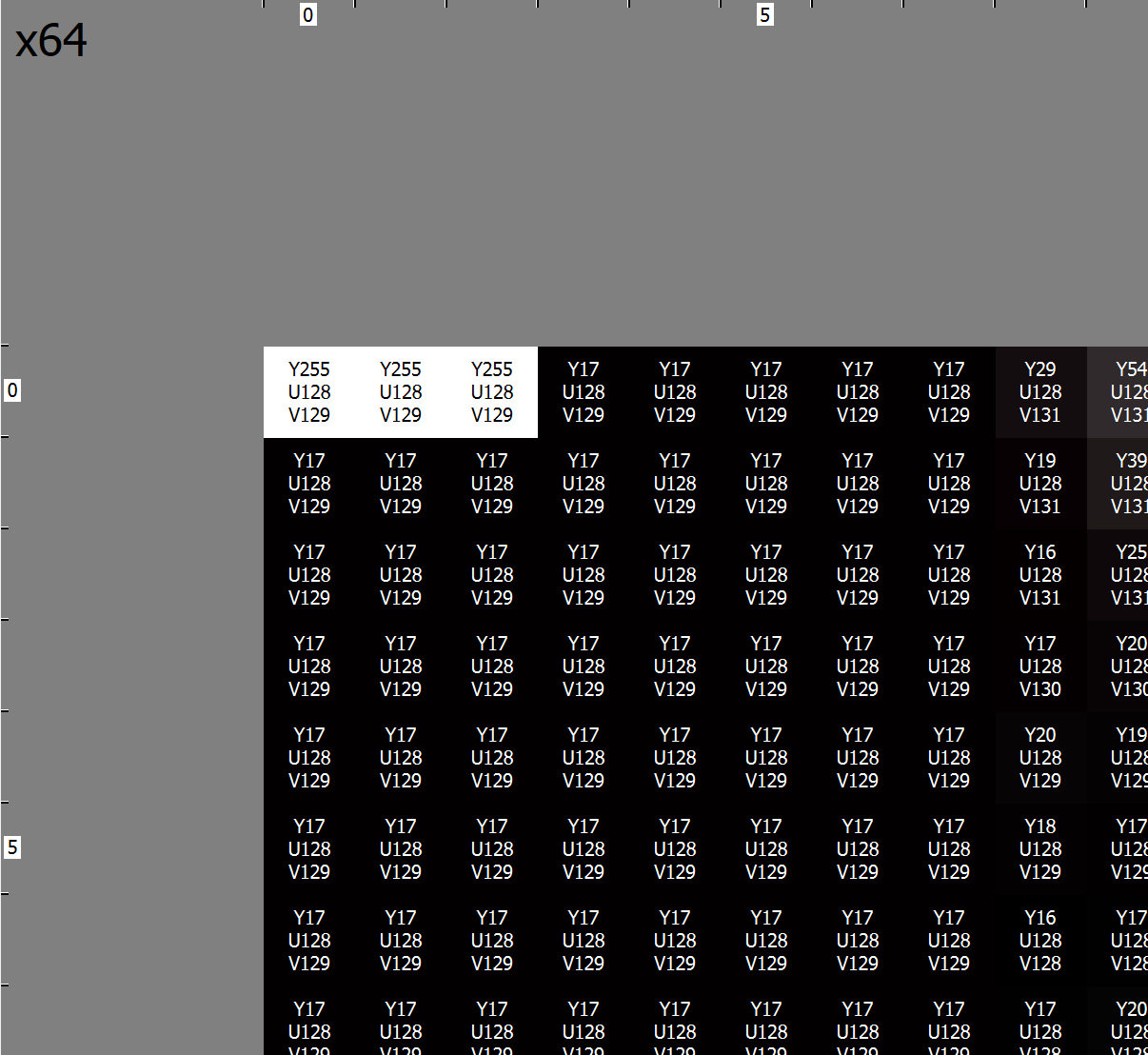 In a YUV image, the pixel storage order is from the top-left corner to the bottom-right. Therefore, to change the upper-left three pixels to white, you only need to modify the first three bytes from 0 to 255. Y indicates brightness, with the brightest value being white. As illustrated: